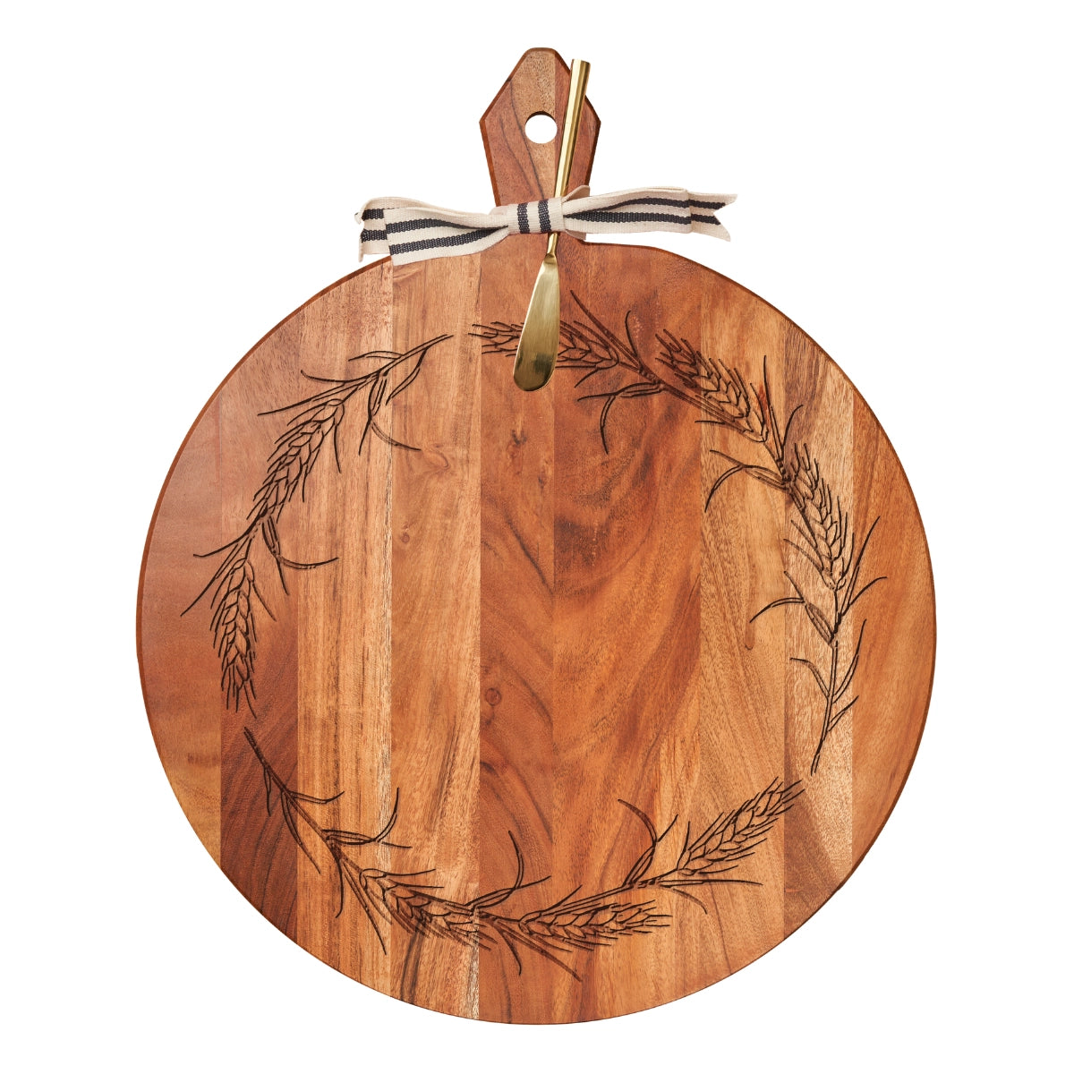 Acacia Cutting Board w/ Gold Spreader & Ribbon - Wheat