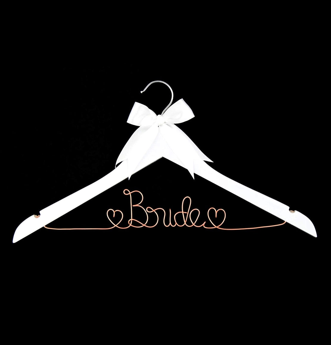 Bride To Be Wedding Dress Hanger (White with Rose Gold Wire)