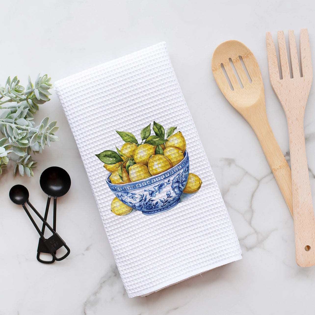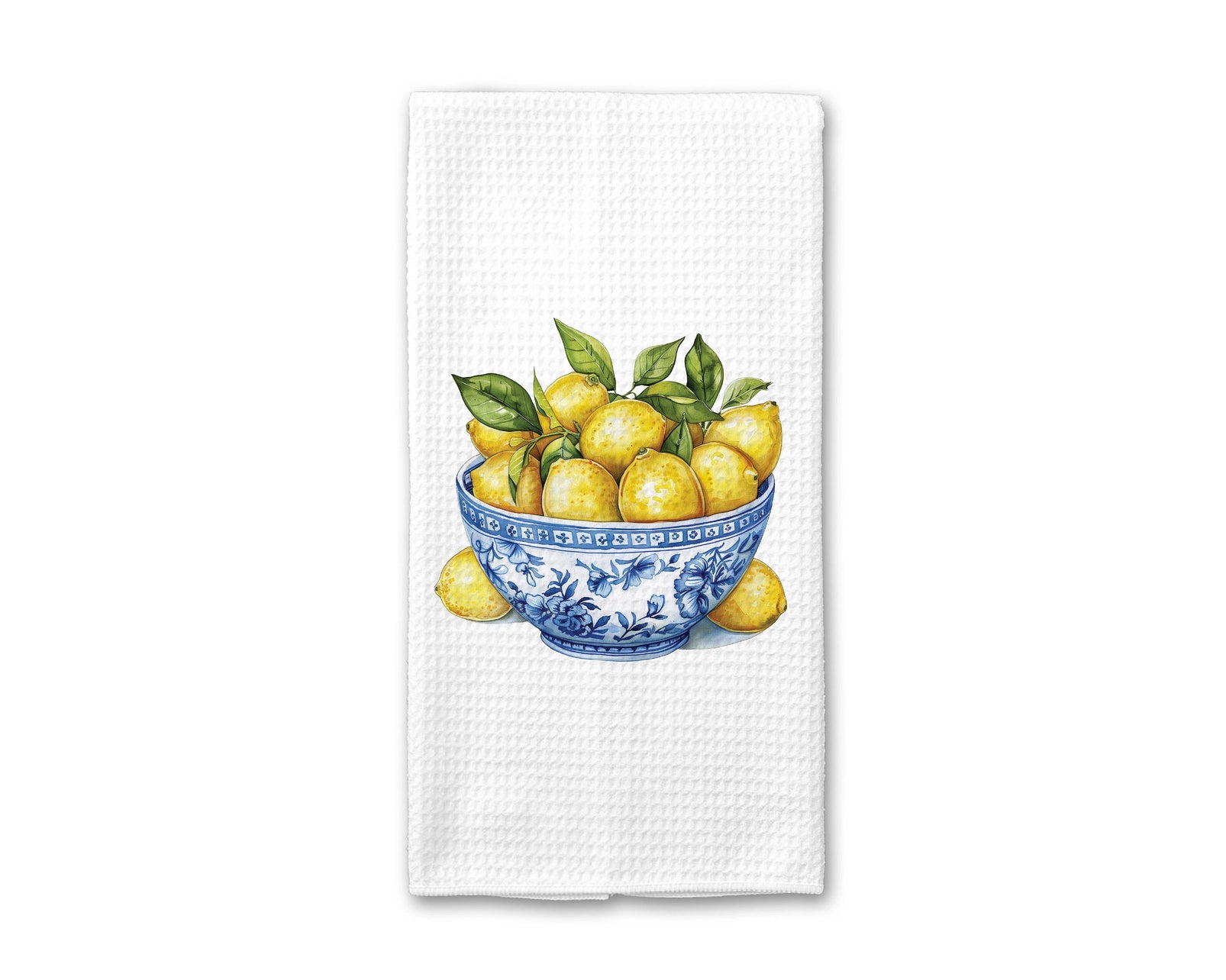 Chinoiserie Lemon Bowl Waffle Weave Tea Towel