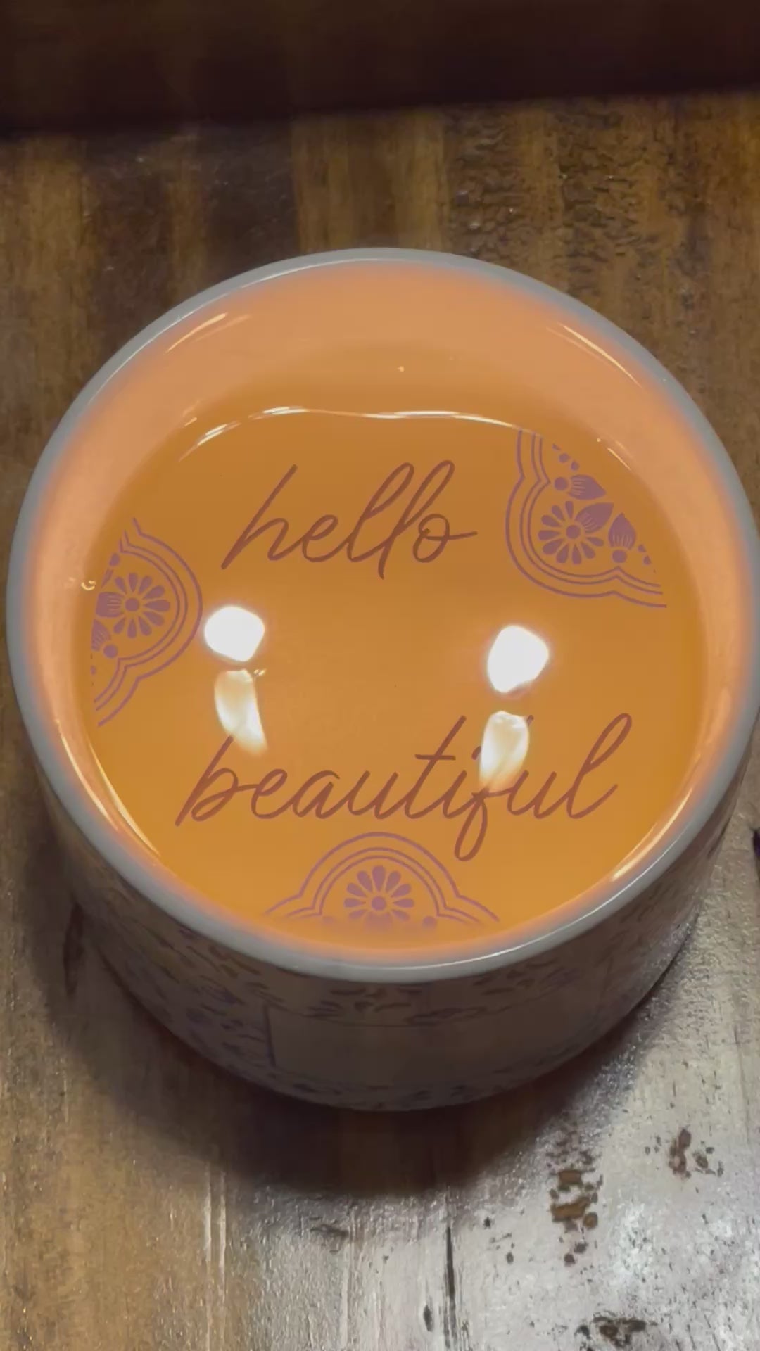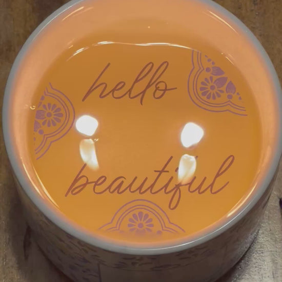 This beautiful unique wax reveal candle has a hidden surprise that reveals a special message one the candle is lit. Once the wax starts to melt the message on this Ciao Bella candle reveals the message "hello beautiful" which stays revealed throughout the whole burn. This is a perfect gift for someone special.