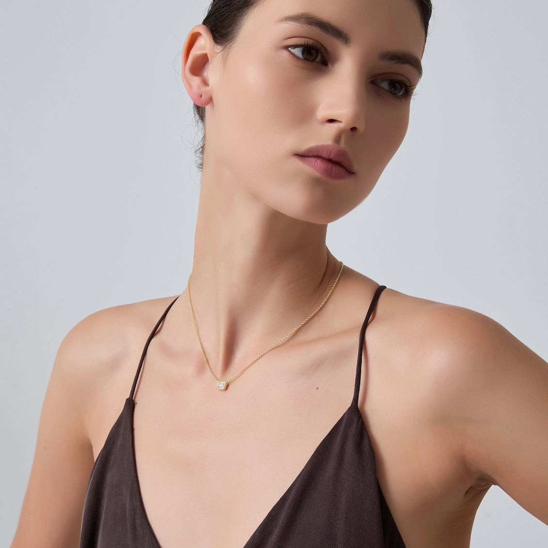 Emerald Cut Moissanite Charm Necklace in 925 Sterling Silver