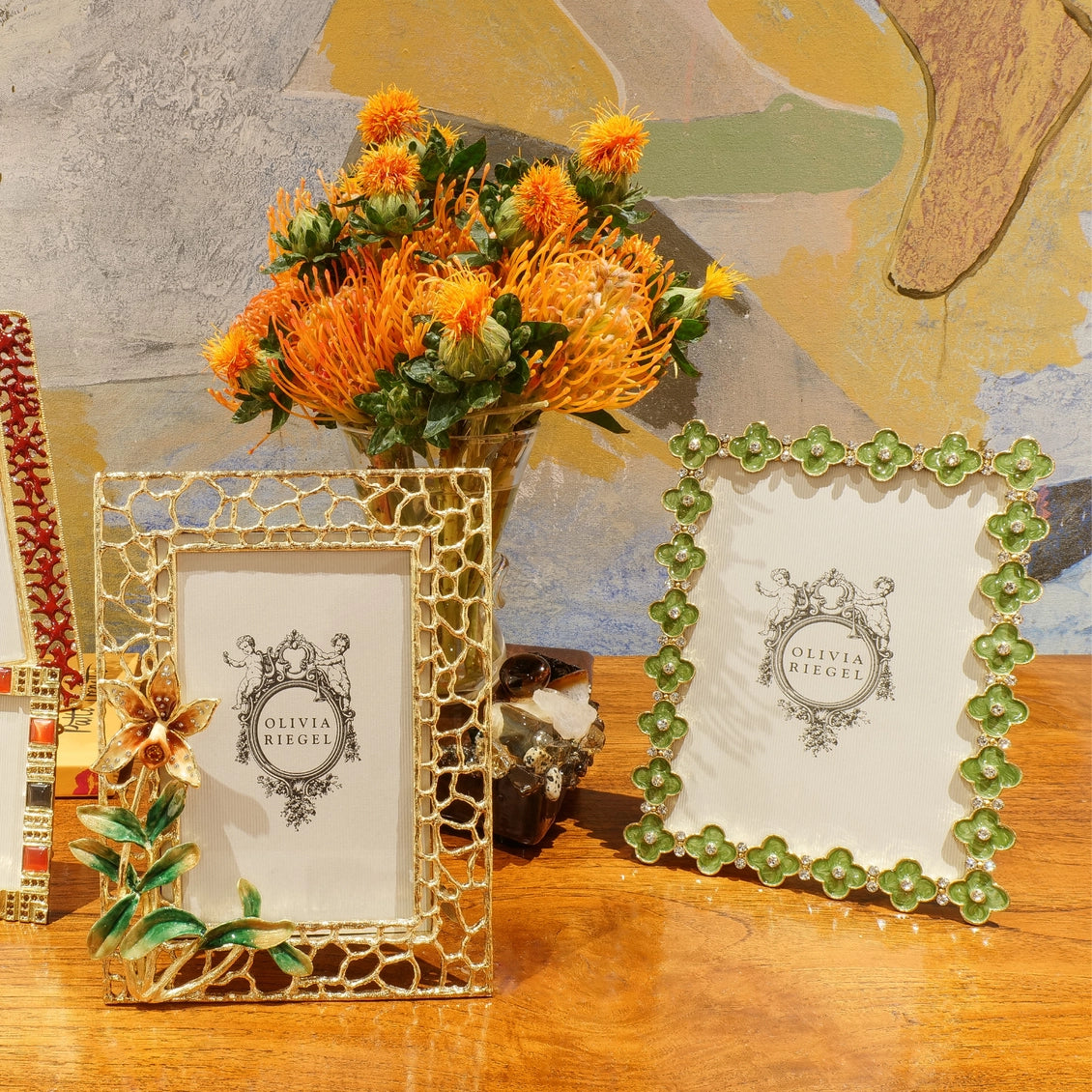 Gold Celadon Enamel Clover 5" X 7" Frame by Olivia Riegel