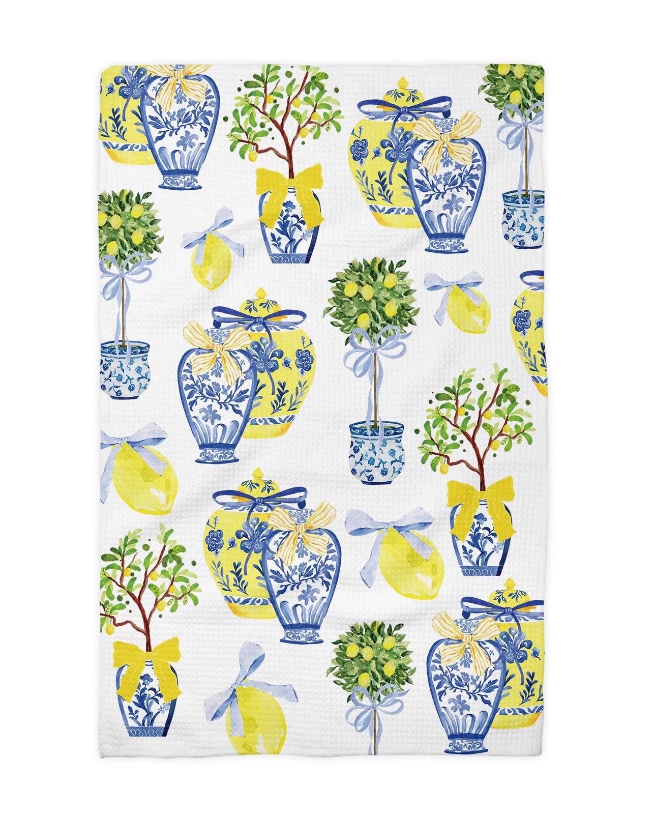 Lemon Chinoiserie Waffle Weave Tea Towel