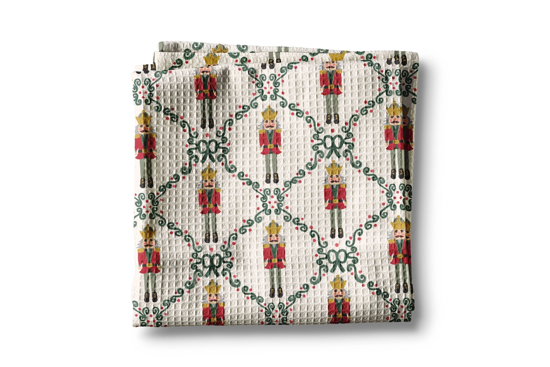 Nutcracker Red Bow Waffle Weave Tea Towel