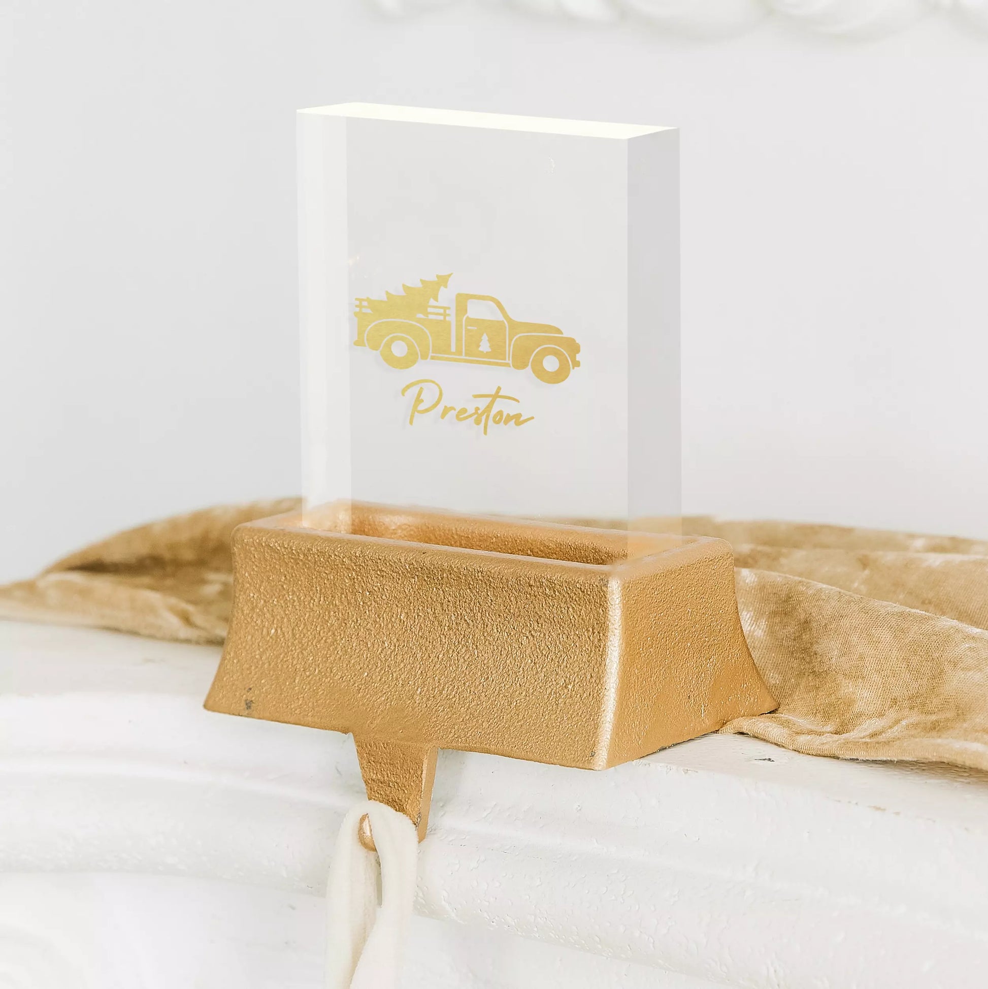 Personalized Acrylic Stocking Holder with Weighted Base - Christmas Truck