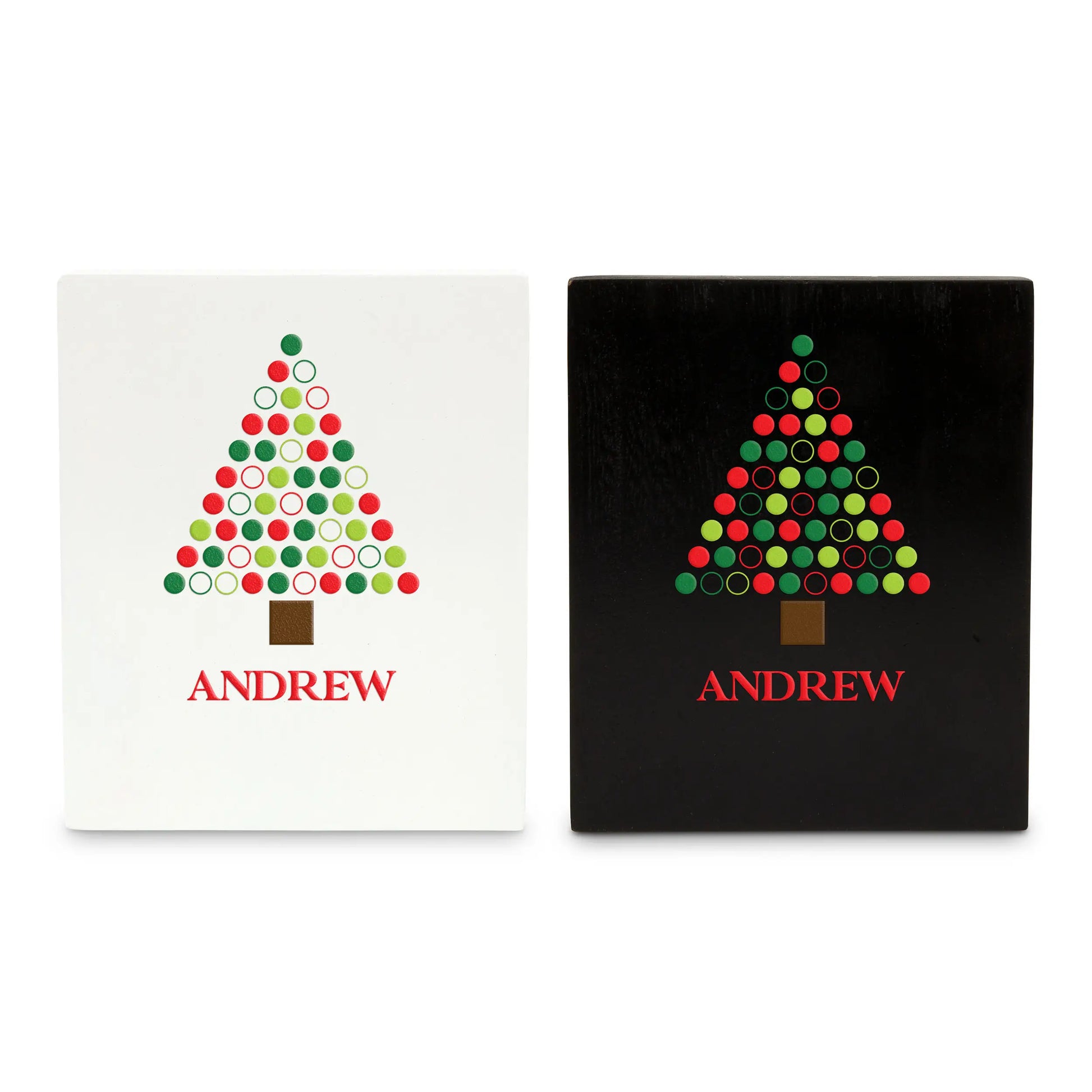 The black or white block is personalized with a custom printed name and monogram initial. Whether you place it on a mantle or shelf, the simple holiday decoration is both functional and beautiful. Get one for each family member, even your pet!