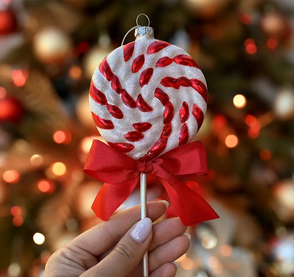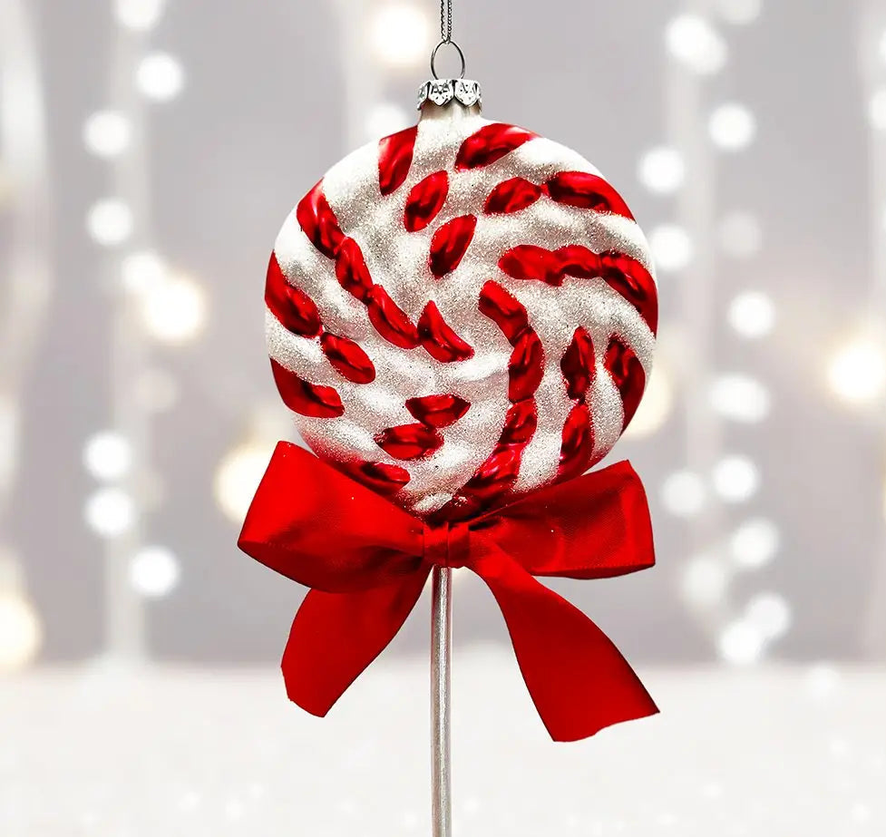 Red Swirl Candycane Lollipop Glass Christmas Ornament