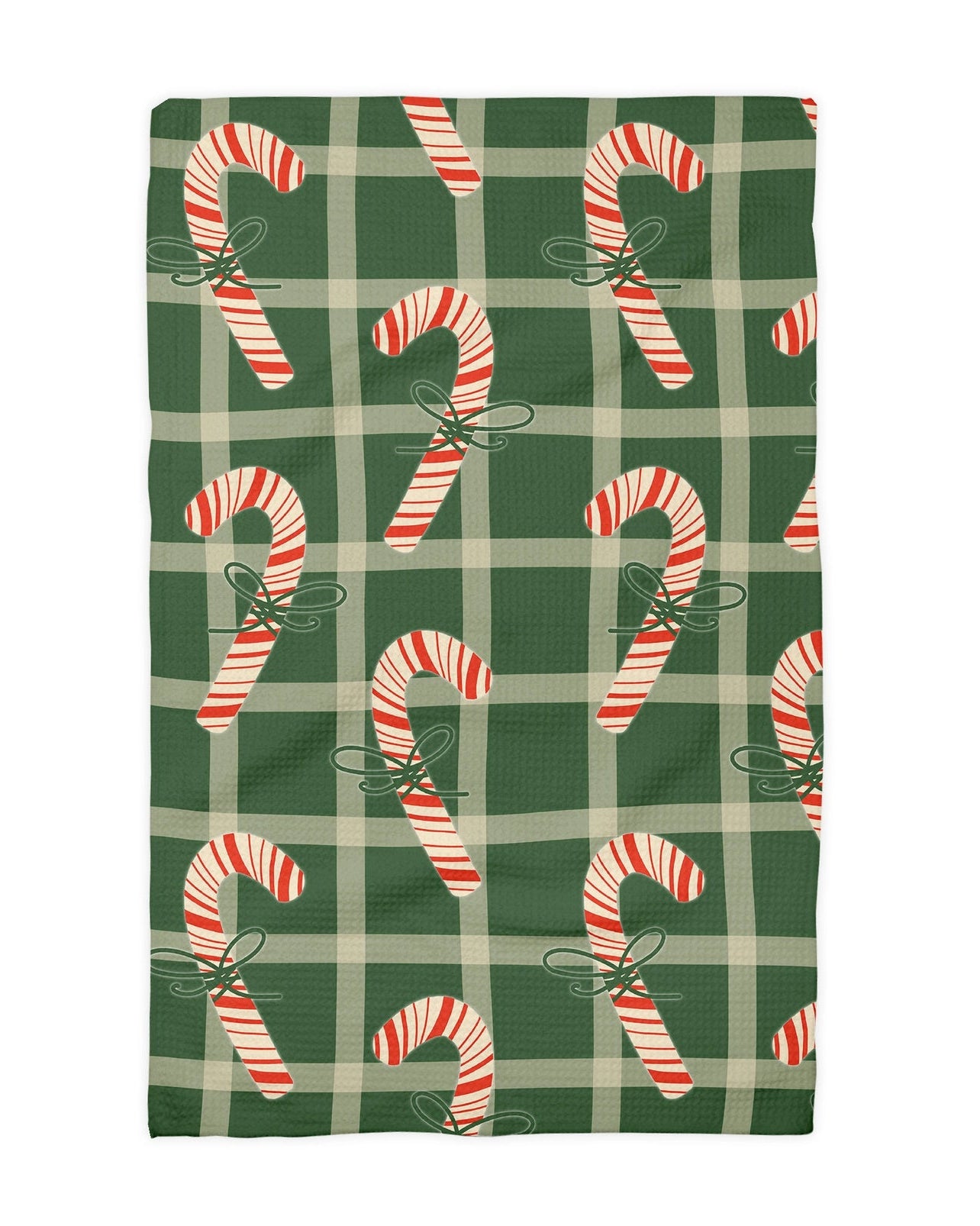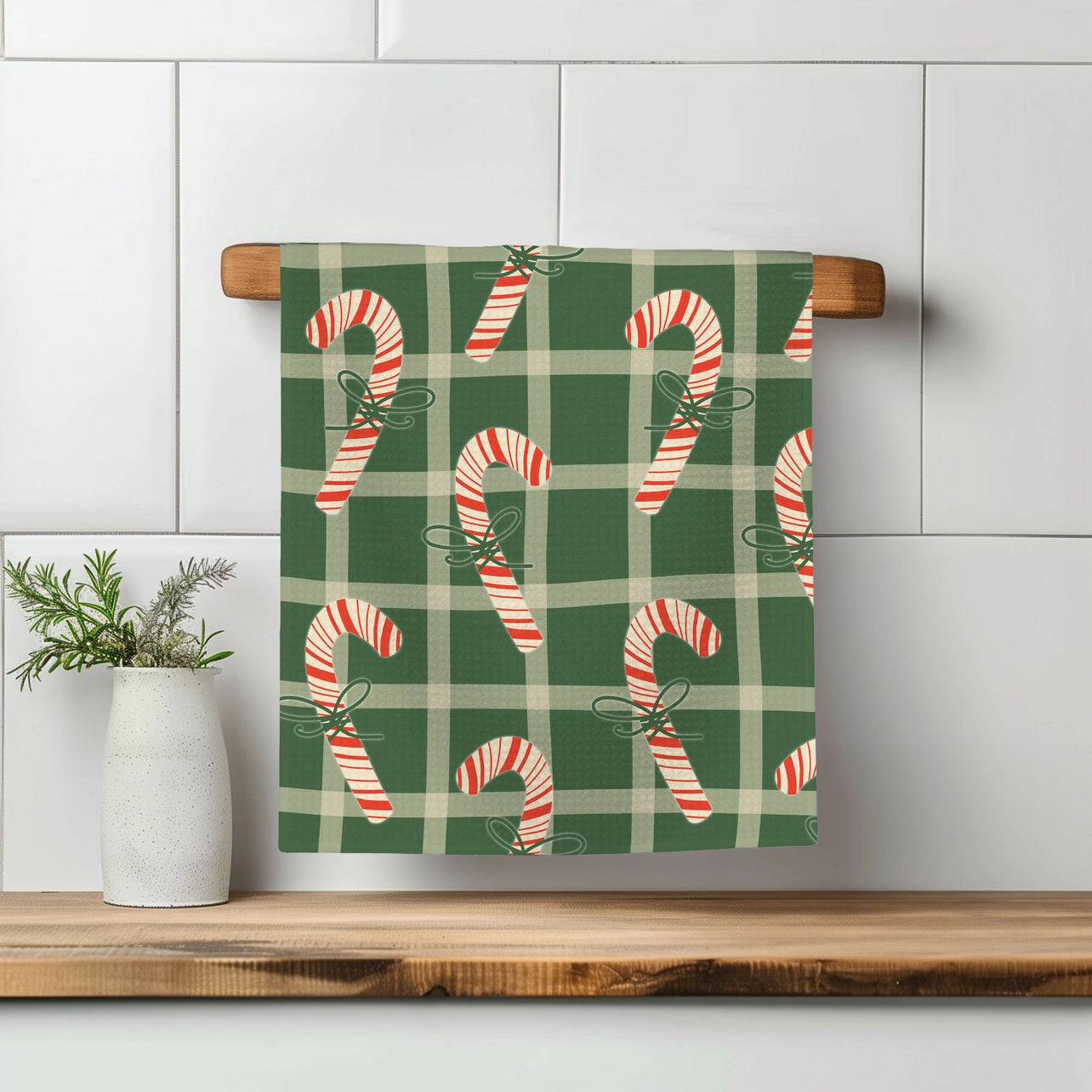 Retro Christmas Candy Cane Waffle Weave Tea Towel
